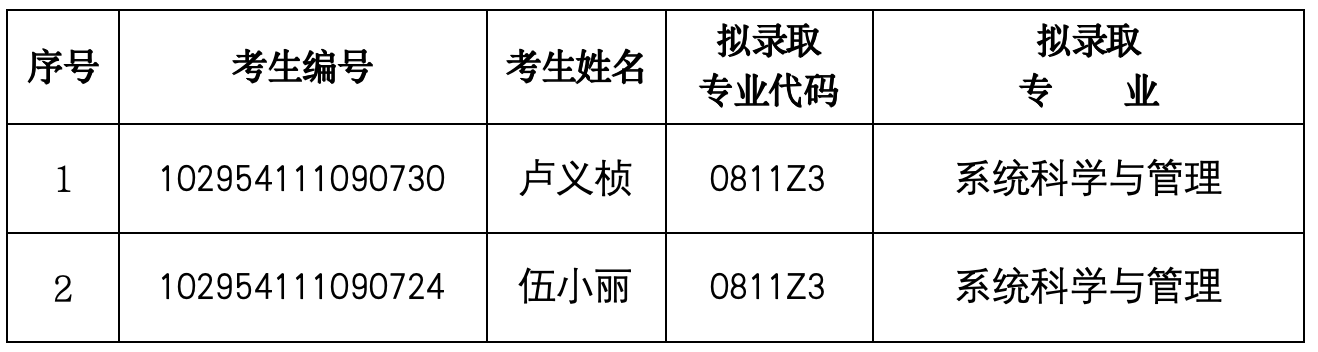 经学院招生工作领导小组审核,现公布我院博士研究生拟录取名单,如因招生名额或考生放弃拟录取资格等情况,学院将及时调整并公示,请考生关注学院网站。