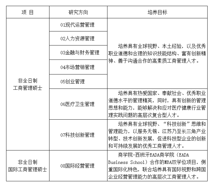 工商管理硕士(MBA)专业分为非全日制工商管理硕士项目和国际工商管理硕士项目。