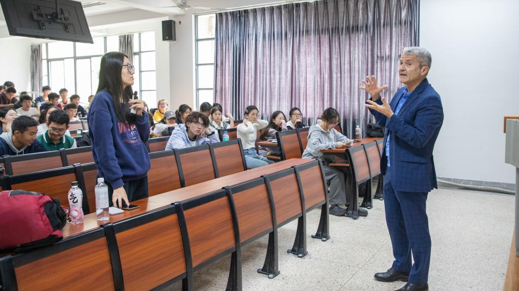会后,Paul Kalfadellis代表蒙纳士大学向我校工商管理中外合作项目2022级和2024级学生详细介绍蒙纳士大学生活与学习环境,并向同学们展示蒙纳士大学庞大的校友资源,表示可以为学生发展提供各种支持和服务,助力毕业生职业发展。Paul Kalfadellis鼓励同学们为后续到蒙纳士大学学习和生活做好充分的准备。