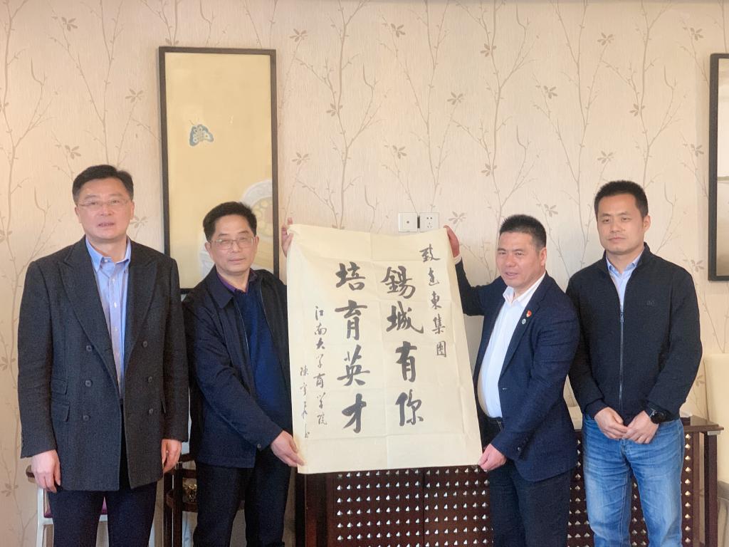 2008届校友、江苏大梦想城地产集团总裁赵玮等陪同下,还实地走访参观了校友企业江苏大梦想城地产集团,了解企业近年来发展建设情况,并对校友企业近些年来为学校基金会捐款表示感谢,对校友企业吸收了我校42名不同专业毕业生创业就业表示欣慰。双方还就商科人才创新创业教育与实践等话题进行了深入交流。