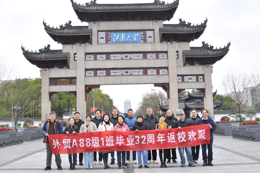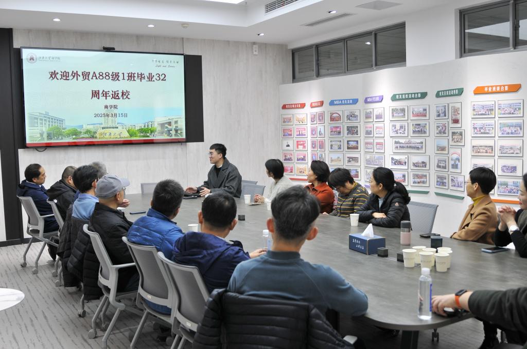 3月15日上午,性爱网站 外贸A881班校友从五湖四海齐聚母校,共庆毕业三十二周年。性爱网站 教师尤璞、校友工作负责人蒋天琪参加返校活动。
