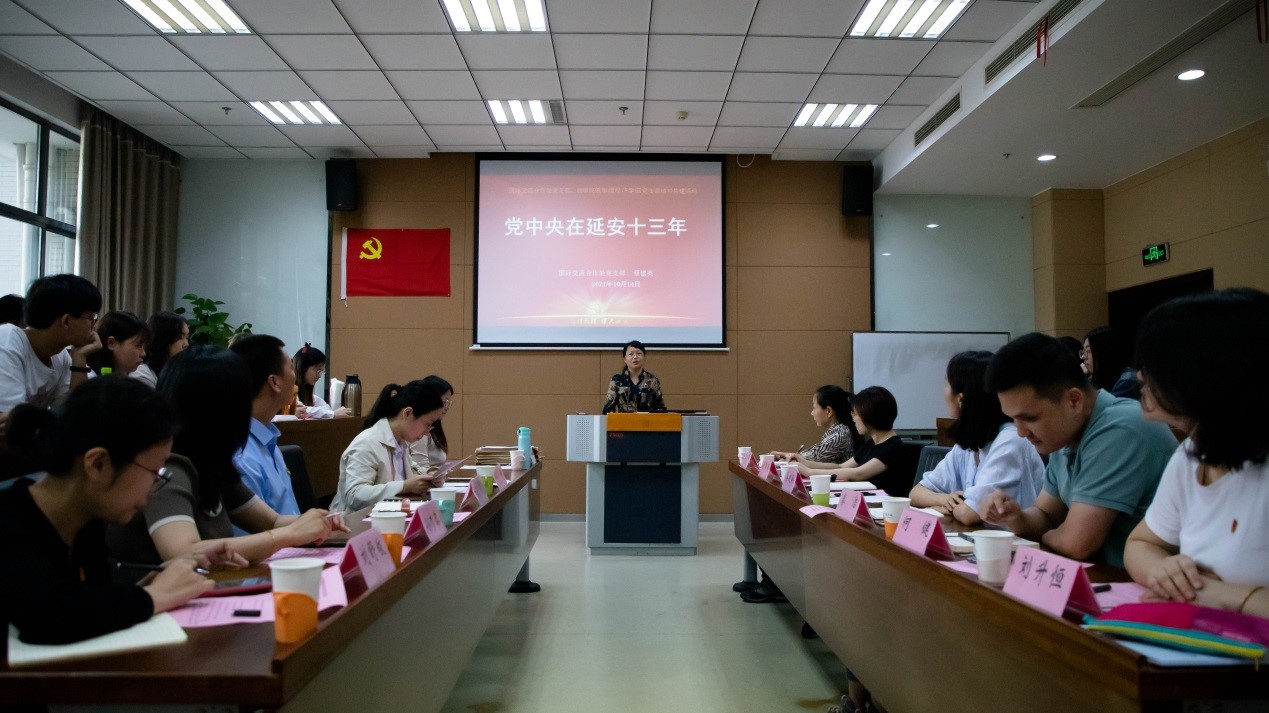 随后,蔡建英以“党中央在延安十三年”为主题就延安精神进行支部书记专题党课,党课从党中央在延安13年的光辉历程、辉煌功绩及基本经验三个部分展开,阐述了我党在延安的历史活动和重大意义。全体党员通过深入浅出的演讲了解了延安精神的灵魂、精髓、核心和突出特征,在场的党员对延安精神进行了热烈的讨论。徐静强调了延安精神是9月29日第一批纳入中国共产党人精神谱系的伟大精神。勉励同志们进一步理解党课所体现的延安精神的来源、内涵及启示。在讨论中,秦洁作为教师党员代表结合部门实践工作对党史学习教育做出了深刻的感悟。她讲到,着眼历史,也立足现在和未来,希望能够将延安精神所体现出的使命感外化为现实工作中的优良品质,为党育人,为国育才。呼吁全体学生党员拓宽国际视野,懂国际规则,积极参与国际竞争,明确个人方向,为中华民族伟大复兴增砖添瓦。性爱网站