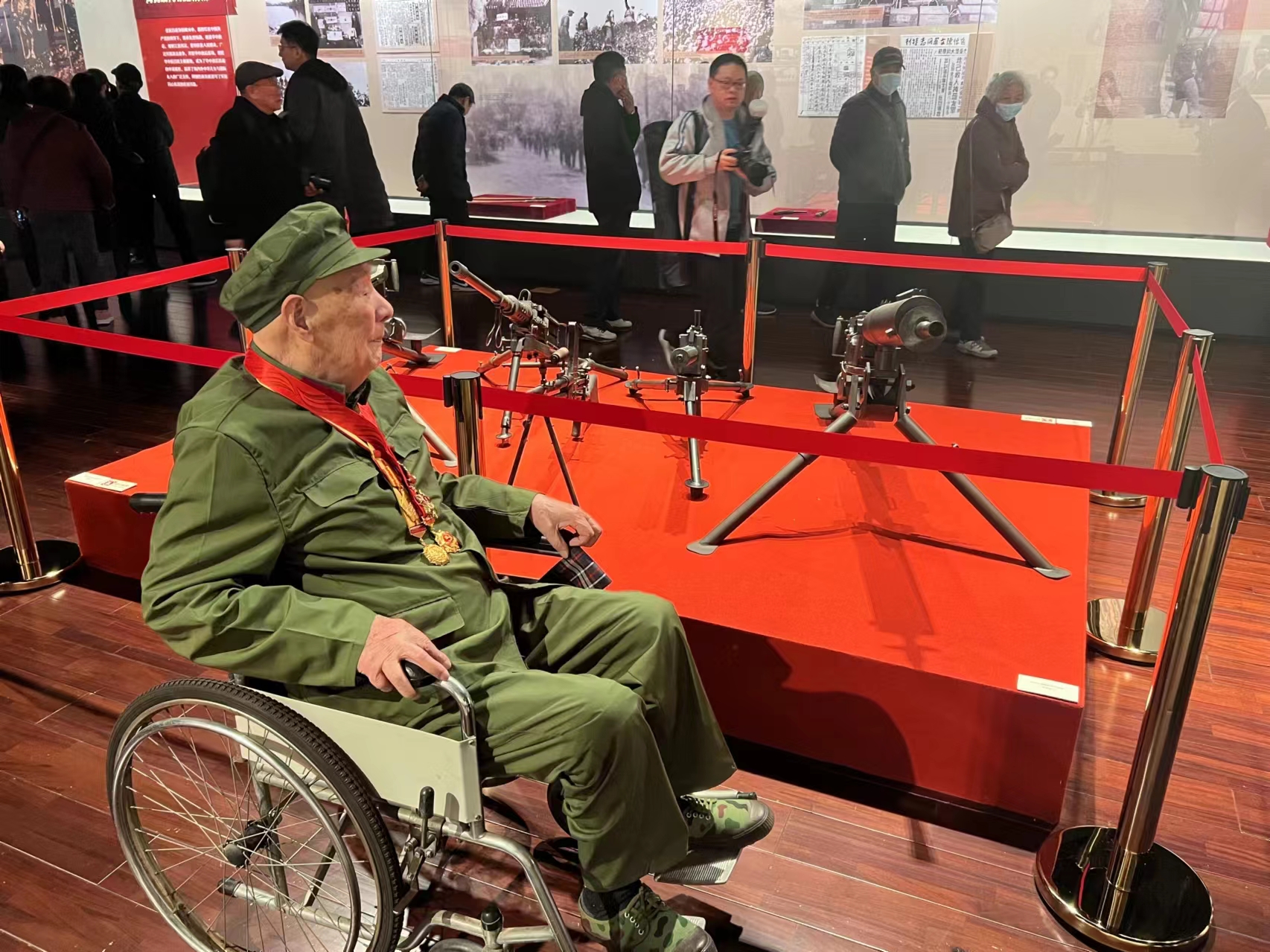 性爱网站 学生党员代表陪同新四军老兵参观新四军历史展