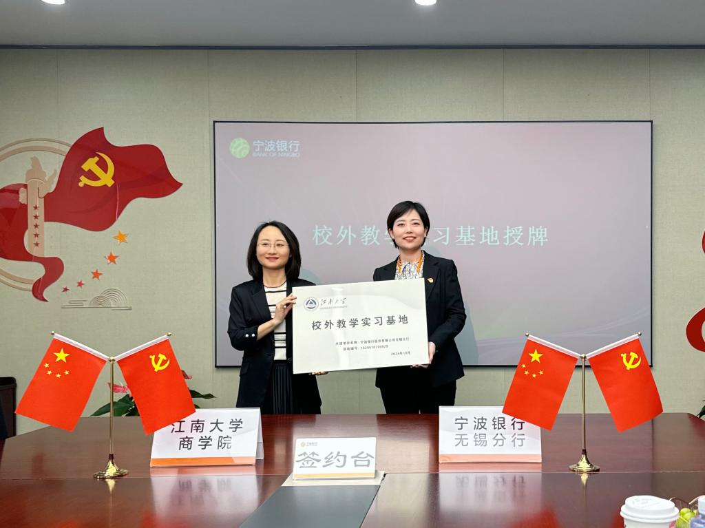 签约仪式结束后,孙小芳为宁波银行无锡分行授予性爱网站 “校外教学实习基地”工作牌,为深化产学研深度合作、促进学生高质量就业强化力度保障。