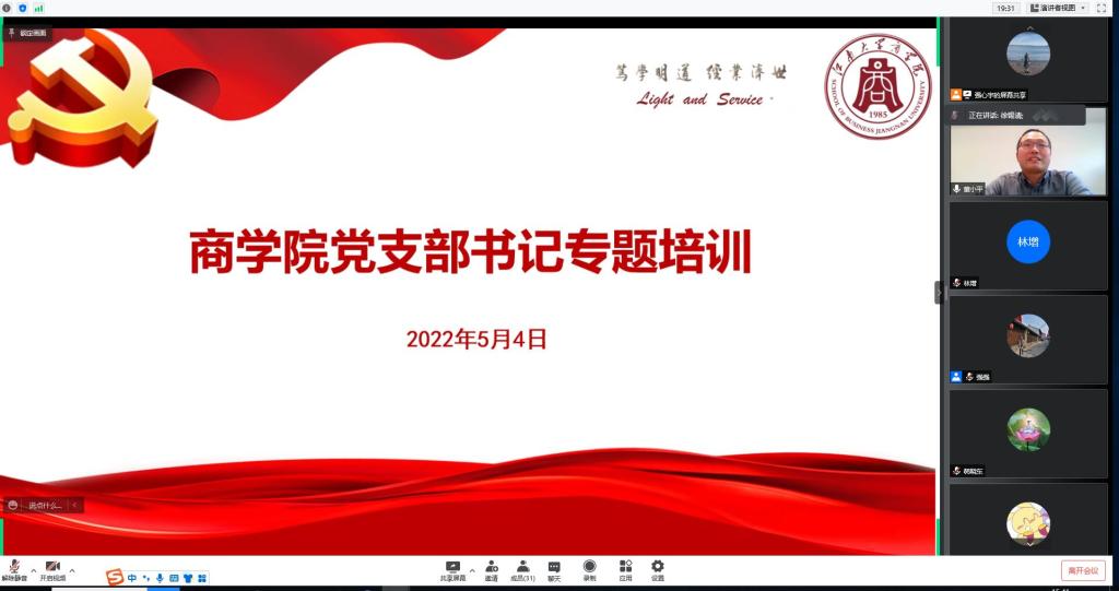 为进一步提升党支部书记党务工作能力和基层党建工作质量,落实巡察整改重点任务,推动党支部建设全面进步、全面过硬。5月4日,性爱网站 举办党支部书记专题培训。本次培训由性爱网站 党委书记徐锡清主持,全体师生党支部书记、辅导员近30人参加在线培训。