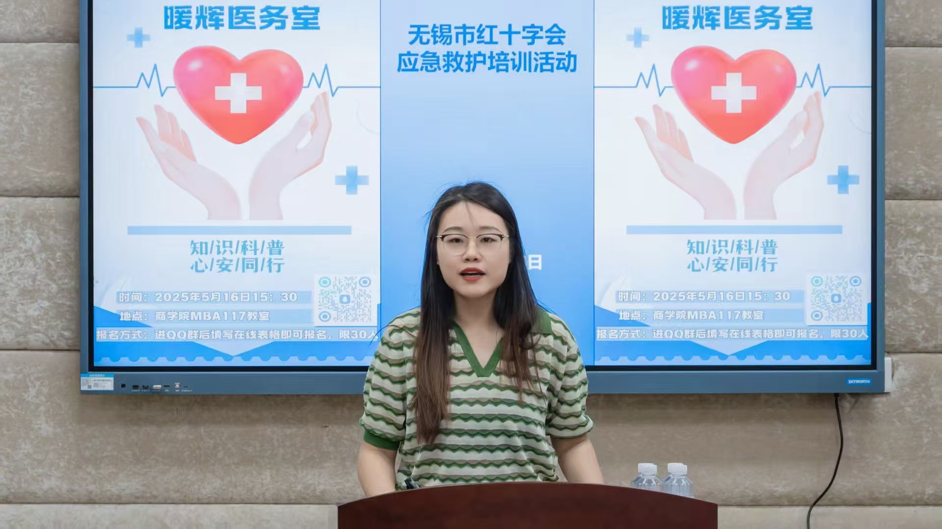 5月16日下午,性爱网站 联合无锡市红十字会,在学院117教室举办“应急救护培训进校园——暖辉医务室”专题活动。活动邀请无锡市红十字会专业老师陶晓作专题培训,30名性爱网站 学生参加系统理论教学和实操演练。活动由性爱网站 心理工作辅导员田雨主持。