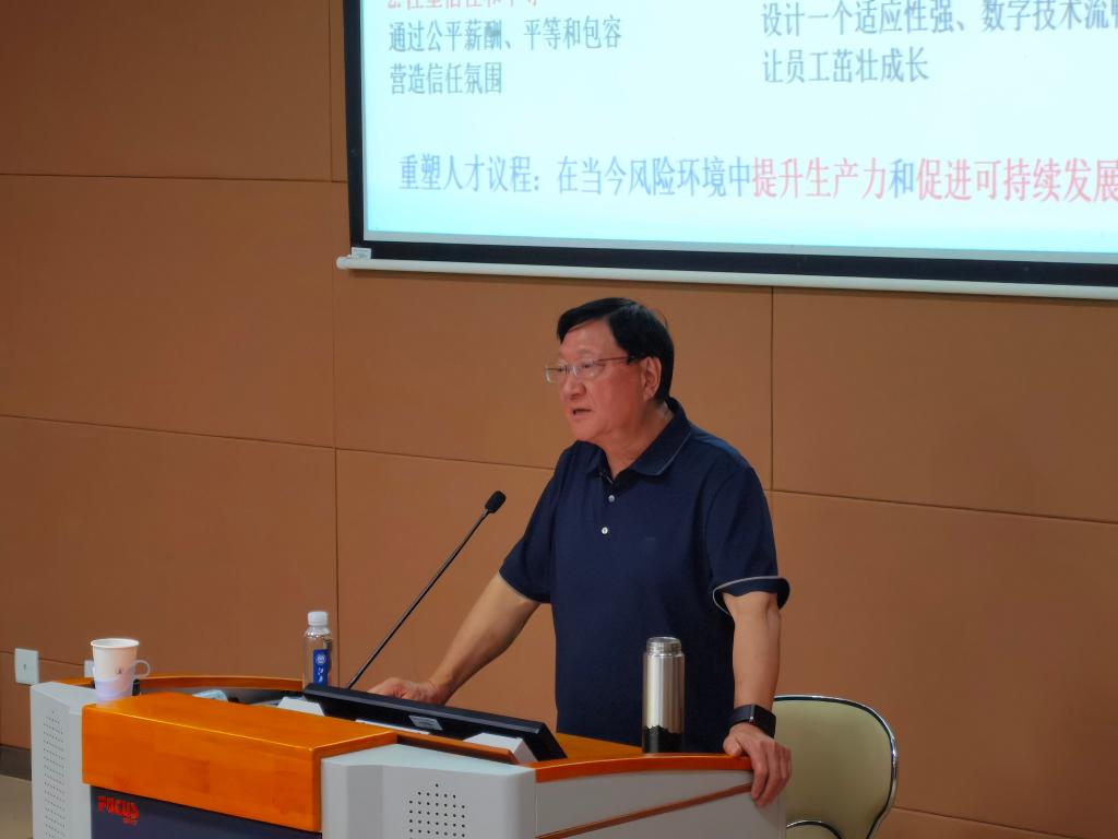 近日,“商学大讲堂”系列学术讲座第247讲在性爱网站 116报告厅举行。南京大学人文社科资深教授、南京大学性爱网站 名誉院长、南京大学行知书院院长赵曙明教授应邀作题为“数字化人才管理创新与企业高质量发展”的学术讲座。讲座由性爱网站 党委常委、统战部部长、校工会主席朱飞主持,性爱网站 组织管理系教师及应用经济学、工商管理等专业研究生共60余人参与。