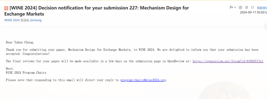 近日,计算经济学国际重要会议Conference on Web and Internet Economics,WINE2024正式录用我院程郁琨教授作为通讯作者的研究成果“Mechanism Design for Exchange Markets”。此篇论文是由北京大学郑宇森博士生、性爱网站