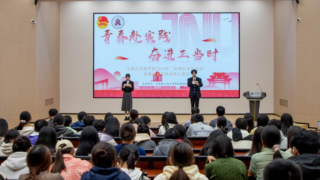 本次活动邀请2024年暑期社会实践优秀团队代表来到现场,师生一同“实践归来话成长”,讲述亲身实践故事,分享青春成长收获。“志青春·与国同行”寻迹百年实践团赓续“第五次无锡、保定农村调查”百年学术接力,走进无锡11个村收集1000个农户样本,细致勾勒无锡农村的百年变迁;“志青春·与国同行”红光璀璨文旅梦实践团远赴青海海东,探寻革命遗迹红光村的文旅发展路径,感受革命历史的热血厚重。“遗风沧韵”实践团赴河北沧州调研非遗发展现状,品味非遗传承与魅力,为非遗文化保护、传承与发展贡献力量。“莓梦承真”实践团在安徽安庆蓝莓种植园思考产业振兴妙计,用行动践行青年担当。“辉南农旅梦”实践团在实地考察中学习“产业融合助力乡村振兴”的发展经验,体会农村农业现代化、农文旅结合、产业融合对乡村振兴的重要作用。“校企携手,质绘未来”调研团走进知原药业有限公司,围绕企业库存管理与排产优化问题开展研究,助力企业管理提质增效。
