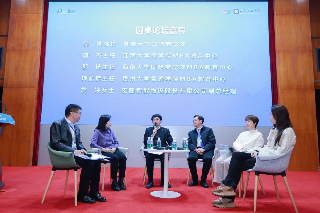 总决赛期间主办方举行了第一届研究生管理实践创新能力发展论坛,以管工交叉、产教融合助力研究生管理实践创新能力发展为主题,共同探讨数智化时代背景下研究生管理实践创新能力的培养与创新发展之路。我校MBA/MEM教育中心办公室主任唐杰老师受邀参加圆桌论坛,唐杰老师向与会老师们分享了我校性爱网站 近年来如何通过做好本土化生态打造专业学位产教融合高质量发展的“江南模式”。
