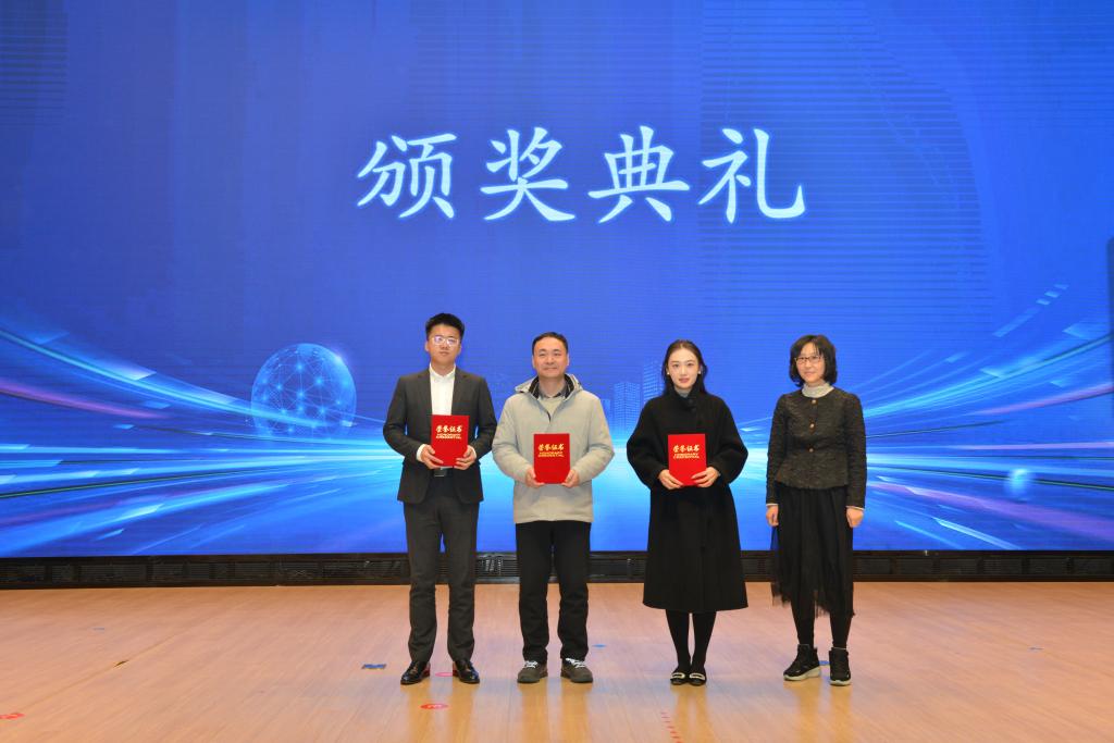 颁发一等奖证书(左三为上能电气队队长陈柏含)