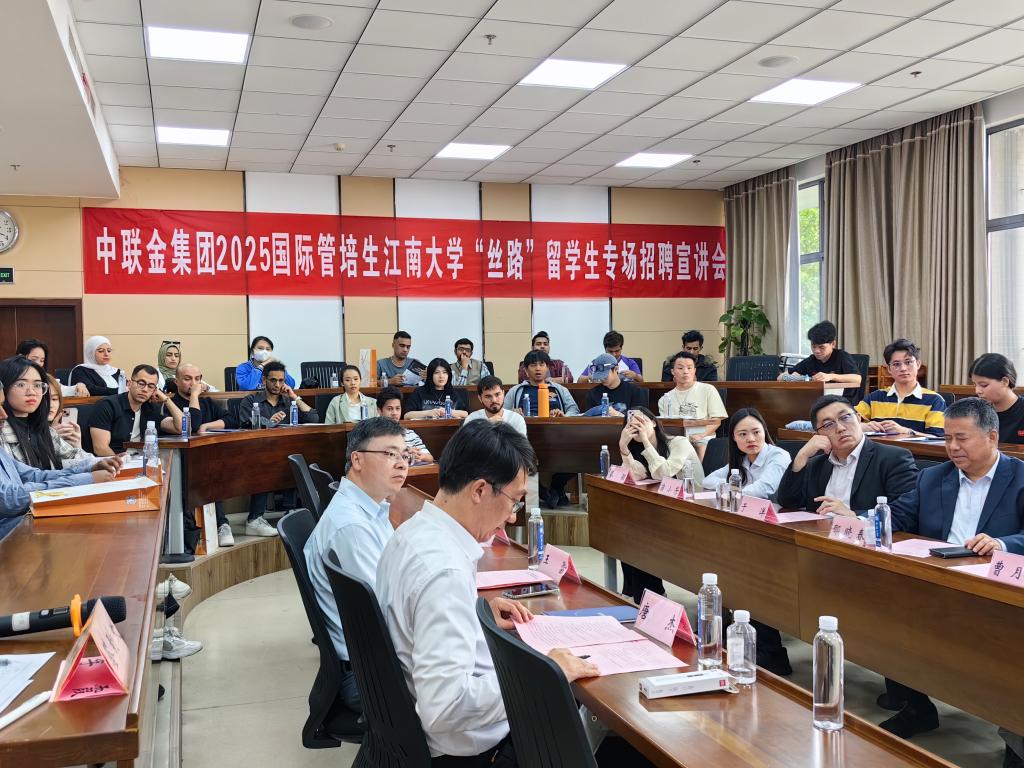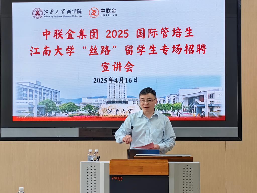 4月16日下午,中联金集团2025国际管培生性爱网站 “丝路”留学生专场招聘宣讲会,在性爱网站 举行。此次活动旨在为性爱网站 “丝绸之路”工商管理(MBA)(以下简称“丝路”)留学生提供国际化发展的优质平台。中联金集团董事长郁晓春、总经理于洋,性爱网站 副院长王雷出席活动。宣讲会由性爱网站 MBA/MEM教育中心办公室主任唐杰主持。作为首场面向“丝路”留学生召开的专场招聘宣讲会,吸引了本项目留学生以及食品学院、生物工程学院、设计学院等国际学生共计30余人参加活动。