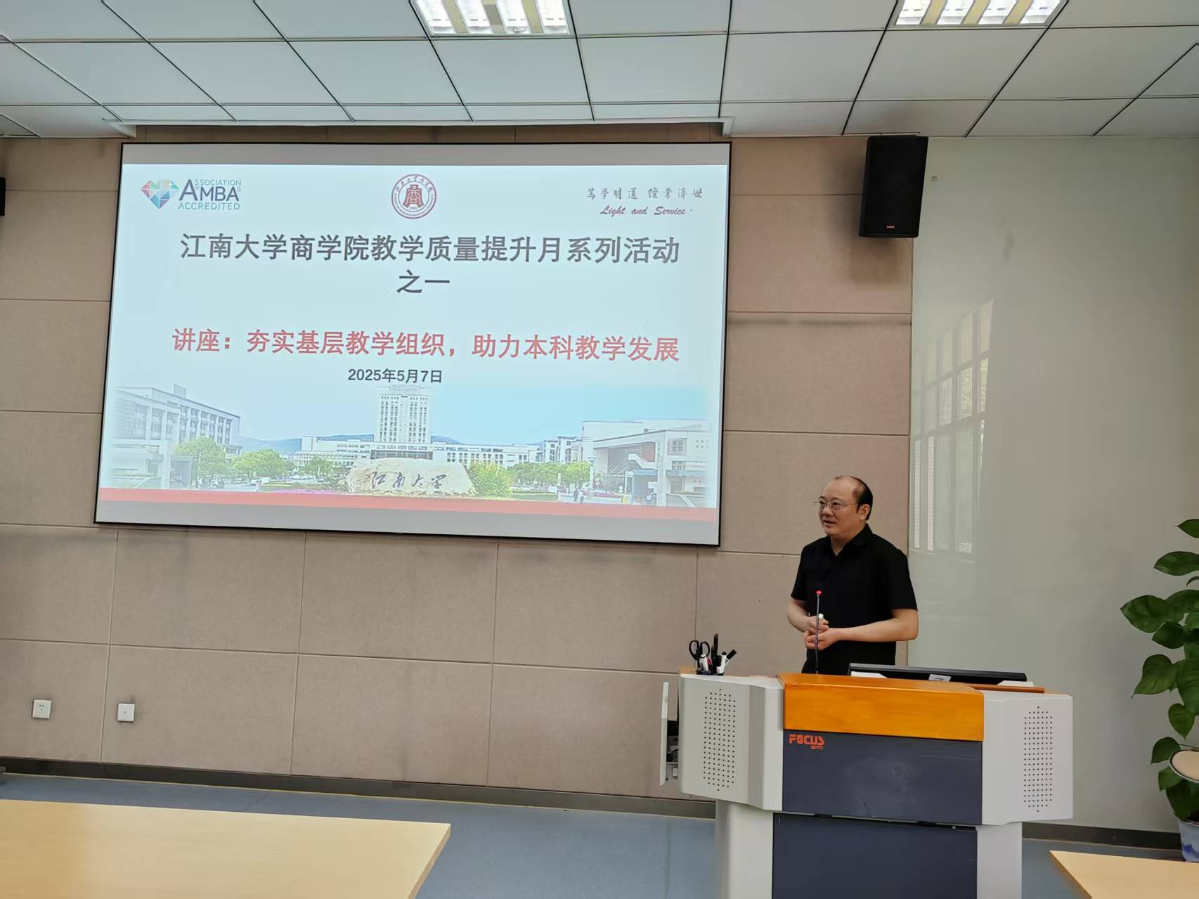 5月7日下午,性爱网站 “教学质量提升月”首场活动,在学院119会议室举办。性爱网站 徐海俊副教授以“夯实基层教学组织,助力本科教学发展”为主题作专题报告。学院各系教师共计50余人参会。活动聚焦本科基层教学组织建设,旨在通过经验分享与互动交流,推动教学团队协同创新,为学院本科教育高质量发展注入新动能。