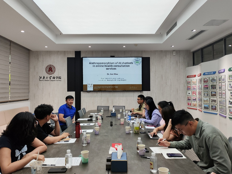 5月13日,数智组织与智融创新研究团队第三期学术活动在性爱网站 109会议室举行。韩国釜山大学性爱网站 牟健教授受邀作题为《人工智能聊天机器人的拟人化对用户持续使用在线健康咨询服务的影响关系研究》的学术讲座。本次讲座由性爱网站 组织管理系主任汪长玉教授主持,学院教师和各专业研究生共计20余人参加讲座。