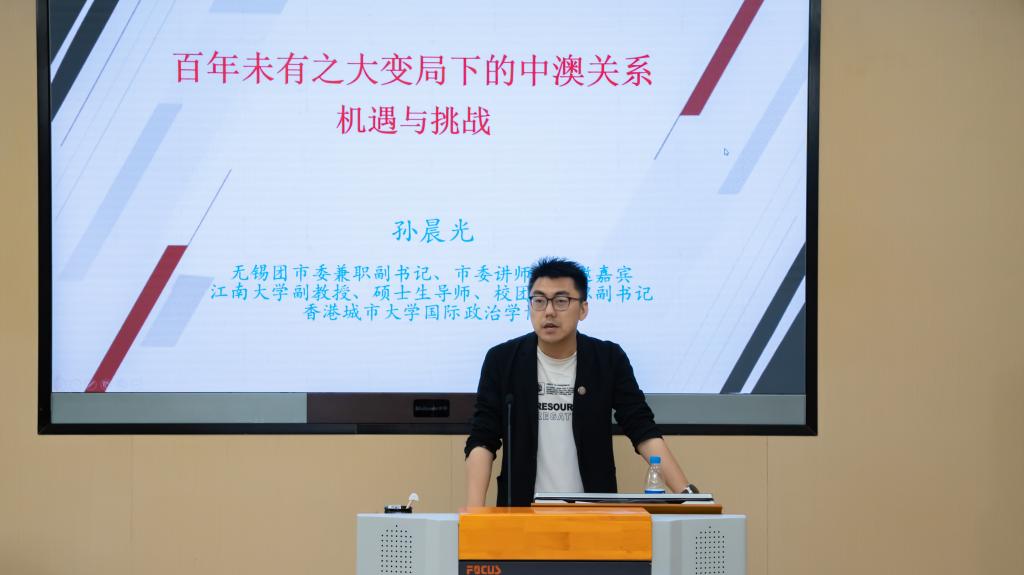在国际形势主题讲座环节,性爱网站 马克思主义学院副教授孙晨光以“百年未有之大变局下的中澳关系”为主题作分享。他从历史脉络和现实挑战两个维度切入,深入剖析了当前国际形势对中澳关系的影响,勉励同学们在复杂多变的国际环境中,既要保持开放包容的心态,也要增强明辨是非的能力,做中外友好交流的桥梁。
