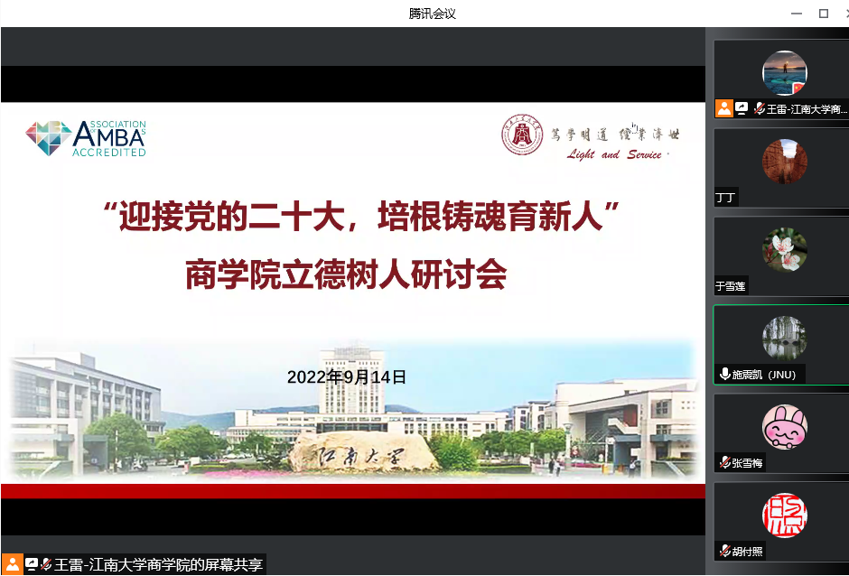 于9月14日在线上召开立德树人研讨会。全院42名教学一线的老师参加研讨活动,院党委委员、副院长王雷教授主持研讨活动。