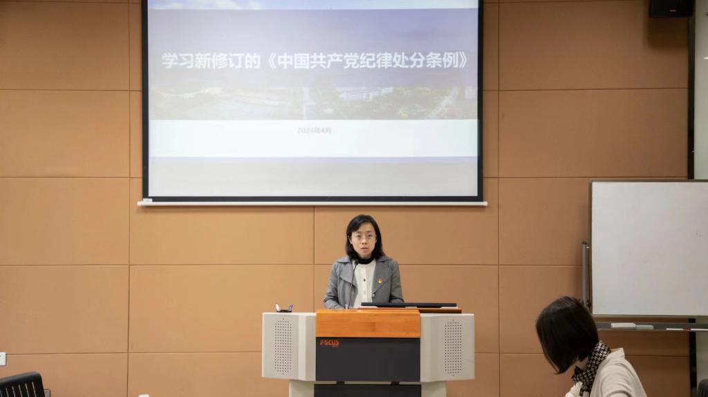 刘长青传达了中共中央关于在全党开展党纪学习教育的精神以及学校党纪学习教育工作部署会要求。他强调,一要提高站位,学深悟透精神。深入学习领悟习近平总书记关于党纪学习教育重要讲话和重要指示精神,提高政治站位,深刻把握党纪学习教育的政治指向、目标任务、实践要求;二要明确重点,不折不扣落实。各支部和广大党员要不折不扣抓好贯彻落实,走深走实推动各项措施落地见效。要原原本本学纪,围绕《中国共产党纪律处分条例》认真学、逐条学,融入日常、抓在经常,同时扎实开展个人自学、集中学习、文化涵育、警示教育、专题培训、宣传解读等工作;三要学以致用,确保取得实效。要联系实际知纪,结合本人实际、工作实际,自觉对照《中国共产党纪律处分条例》各项规定,用党规党纪校正思想和行动,真正使学习党纪过程成为增强纪律意识、提高党性修养的过程。