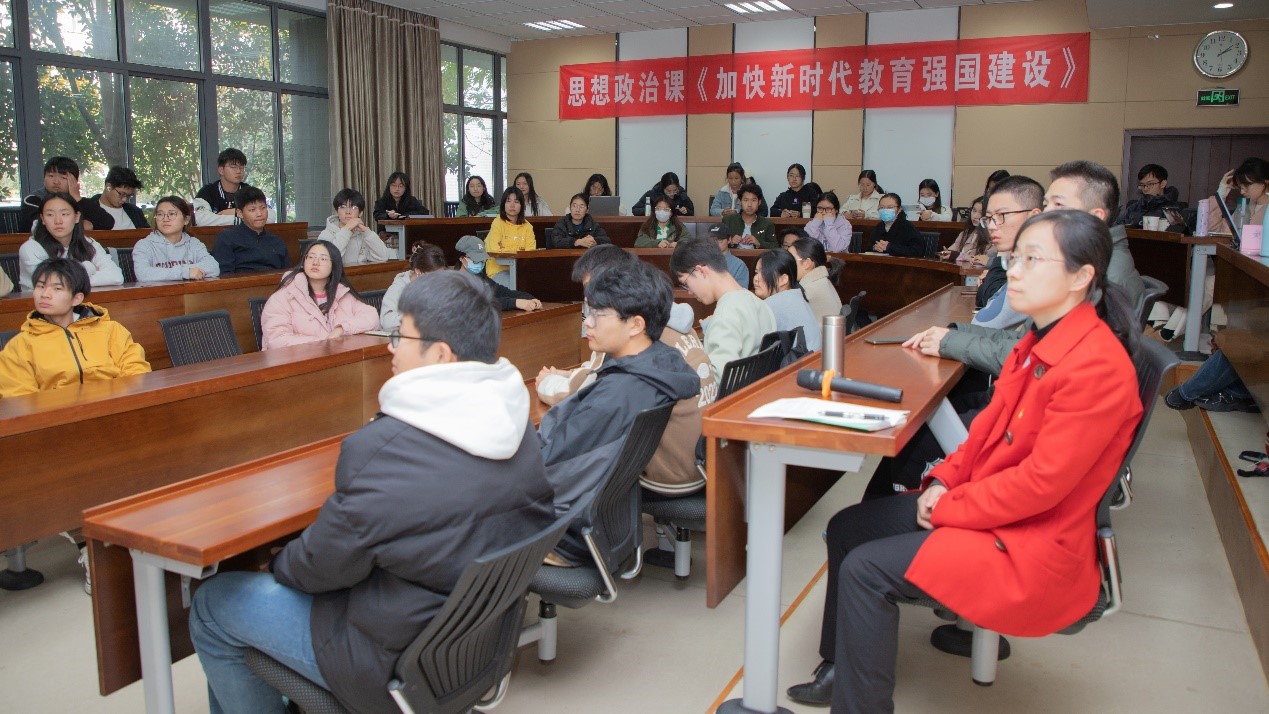 征程万里风正劲,重任千钧再出发。本次思想政治理论课不仅让同学们深刻认识到教育强国的内涵与意义,更让大家体悟到作为当代青年大学生肩上的责任与担当。立足新时代,奋进新征程,高校师生应不断加强自身建设,以自身所学推动我国教育朝着更高质量、更有效率、更加公平、更可持续的方向前进,以教育现代化支撑国家现代化。