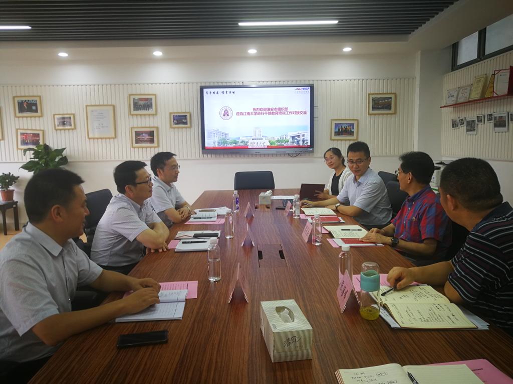 通过沟通和交流,双方达成开展干部教育培训合作的初步意向。会后,姜筱卉一行还考察了培训场地和现场教学点等。
