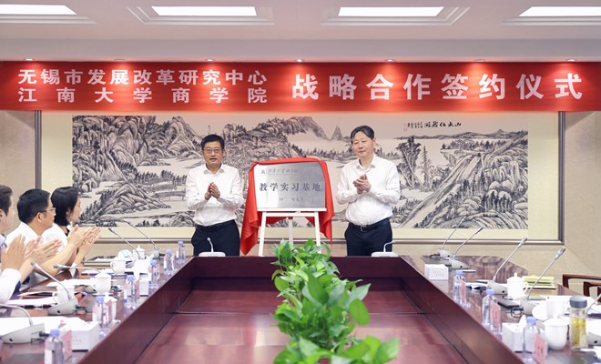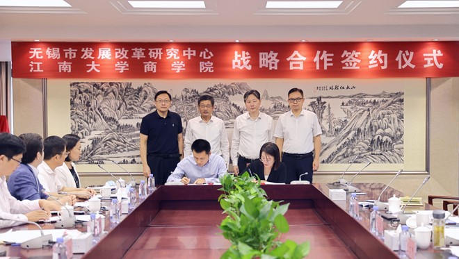 院长浦徐进与无锡市发展改革研究中心主任陆敏敏共同签署《战略合作框架协议》。协议强调,要探索政产学研结合新模式,在双方不断加强密切合作的过程中,实现优势互补、强强联合,立足无锡、辐射区域、面向全国、放眼世界,紧紧围绕国家战略和全市重点工作,积极开展前瞻性问题研究,在合作课题申报及立项、合作为解决专业理论问题与实务难题提供咨询服务、合作推动基层党支部建设、合作举办各类学术活动、合作开展人才培养、合作打造江南案例特色品牌等方面,建立健全协调推进、资源共享、成果转化、定期交流等机制,全力打造市校合作的新样板。