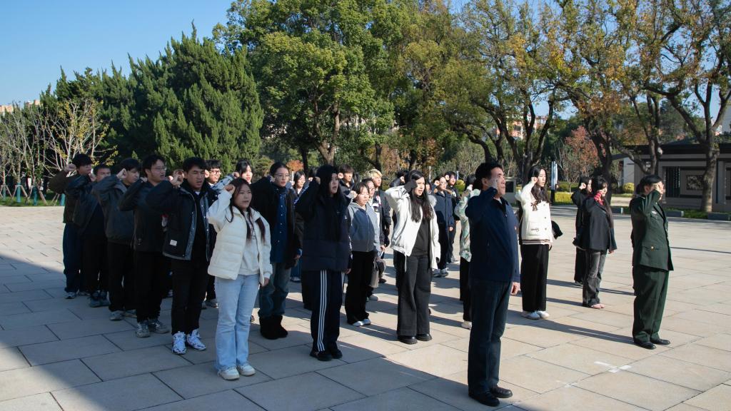 梅金超从历史、现实、使命三个维度切入,深刻阐释了传承先烈精神的时代价值与担当民族复兴大任的内在要求。他结合无锡本地的革命历史与当前复杂的国际形势,以鲜明的立场阐明了捍卫国家主权与安全的坚定决心。同时他向青年学生提出了践行时代使命的实践路径,勉励青年学生要铭记历史、居安思危,与祖国共奋进、与时代同步伐,将青春汗水挥洒在民族复兴的伟大征程上。最后,他带领参加活动的全体人员庄严宣誓:“强国有我,请党放心!”