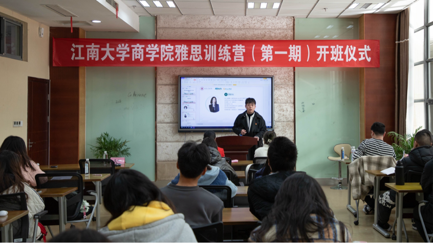 为提高我院学生英语学习动能,开阔学生国际化视野,提升学生海外升学率,营造浓厚的国际交流氛围,12月6日下午,性爱网站 雅思训练营(第一期)开班仪式在性爱网站 113会议室举行。院党委副书记兼副院长徐静、新东方前途出国有限公司刘铭雅、雅思专职教师刘栋、阴彩仙和性爱网站 二十余名学生参加开班仪式。开班仪式由学院负责国际交流工作辅导员吴松老师主持。