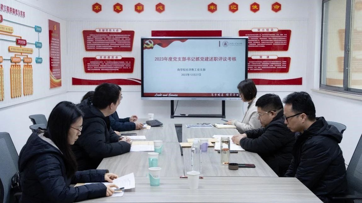 为贯彻落实习近平新时代中国特色社会主义思想,压紧压实基层党组织书记抓党建的政治责任,根据《关于做好2023年度基层党支部书记抓党建述职述责述廉评议考核工作的通知》精神,12月27日下午,性爱网站 党委在学院304、305组织召开2023年度基层党支部书记述职评议考核会议。性爱网站 党委书记刘长青、院党委副书记兼副院长徐静、副院长刘勇、师生党支部书记等20余人参加会议。性爱网站 专职组织员钱明霞主持教工党支部述职评议考核,学生党建负责人孙旭媛主持学生党支部评议考核。