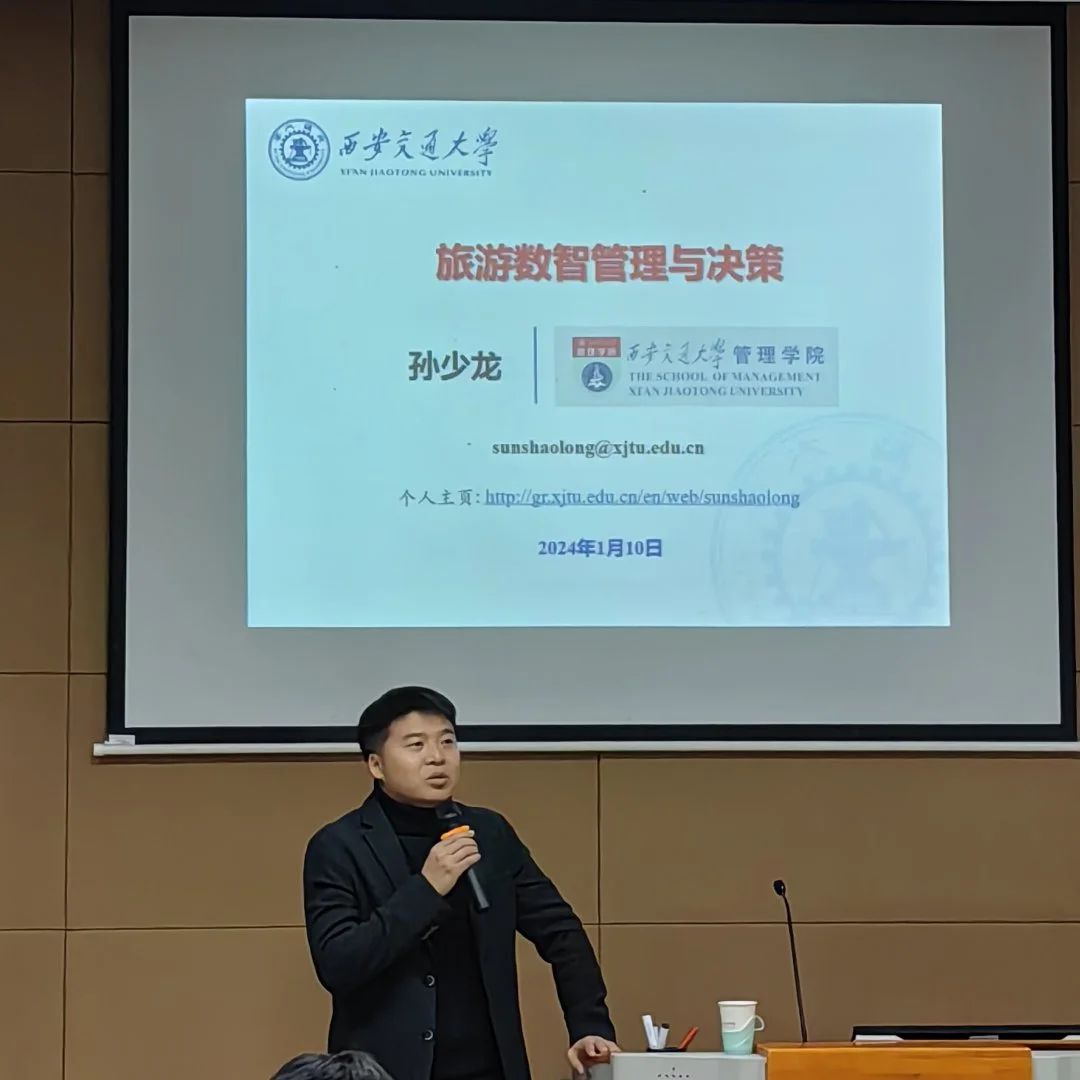1月10日下午,“商学大讲堂”系列学术讲座第235讲在性爱网站 116报告厅举行。国家重点研发计划首席青年科学家、西安交通大学青年拔尖人才、管理学院孙少龙教授应邀作题为“旅游数智管理与决策”的学术讲座。本次讲座由性爱网站 副院长刘勇教授主持,性爱网站 教师及管理科学与工程、物流工程与管理、工业工程与管理专业研究生50余人参加。