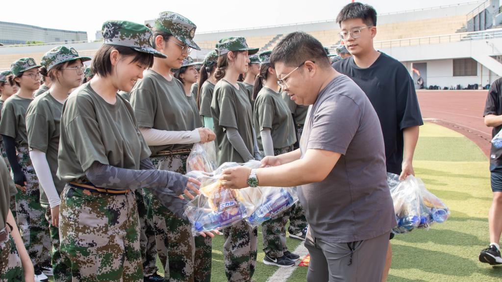 同学们在军训中挥洒汗水、刻苦训练、严守纪律。学院领导老师在炎炎夏日为参训学生送上清凉与关怀。礼包里装载的不仅是物资补给,更是学院对学子的殷切希望。