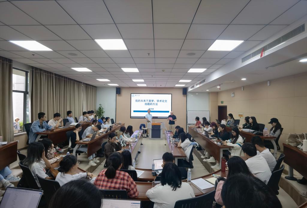 黄寿峰教授首先从选题的原则切入,强调选题应具价值、兴趣、准备和创新,避免选择过于简单或复杂的题目,并排除缺乏可行性和数据获取困难的选题。随后,他点明了几处选题过程中可能的误区,包括选题不切实际、缺乏价值以及盲目追逐热点。对此,他结合文献案例,深入浅出地介绍了多种选题方法,并详细阐述了一种由远及近、由大到小、由陌生到熟悉、由发散到聚焦的选题思维。