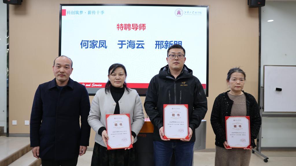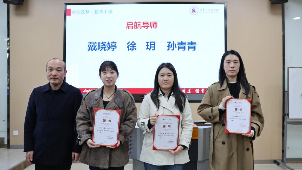 在导师聘书颁发环节,刘勇为何家凤、于海云、邢新朋三位副教授颁发“特聘导师”聘书,为孙青青、戴晓婷、徐玥三位青年颁发“启航导师”聘书。三位特聘导师均拥有丰富的科创竞赛指导经验,曾多次带领学生斩获国家级竞赛最高奖项,是营员们科研路上的“学术领路人”。三位启航导师作为扎根教学科研一线的青年人才,不仅专业能力扎实,更因与学生年龄相近、视角契合,能精准共情新营员初入科创领域的困惑。