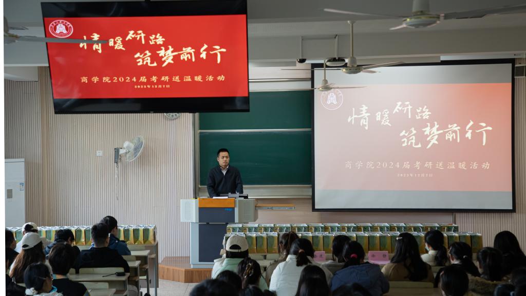 逐梦正当时,研路绽芳华。2024届考生考研进入倒计时,为帮助考研学子们稳心态、增信心、添动力,做好备考最后的冲刺,性爱网站 于12月7日下午在第二教学楼举办“情暖研路,逐梦前行”性爱网站 2024届考研送温暖活动。学院领导给予高度重视,性爱网站 院长浦徐进、院党委副书记兼副院长徐静出席本次活动,与毕业年级辅导员、各班就业信息联络员一起,为即将考研的同学送去暖心的鼓励与美好的祝福。