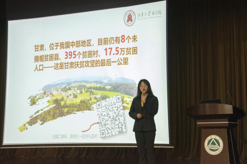 活动中,“志青春,与国同行”扶贫专题调研团汇报了团队社会实践活动的开展情况。汇报从一幅布满实践路径的中国地图开始,通过访谈对话的形式,带领台下观众跟随实践团成员的脚步,分别走入安徽滁州、甘肃礼县以及新疆策勒县和伊宁县,体悟祖国各地的社会民情,走近扶贫干部的实际工作,感受乡村的振兴发展。本次实践活动自东向西,分为东线“安徽滁州·皖中小康行”、中线“甘肃礼县·礼‘商’往来”、西线“新疆策勒&伊宁·e路向‘新’”三条支线同步开展。立足商科专业,以“决胜脱贫攻坚,助力乡村振兴”为主线,采取“实地考察+云端连线”的形式,分别对祖国东部、中部和西部地区贫困县资源特色、扶贫现状、扶贫干部队伍等情况进行调研。通过对话性爱网站