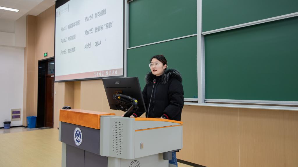 往届优秀学生代表结合自身经历,分别就考研、留学、就业方面分享了经验和心得。2024级金融学专业硕士张晴回顾了备战考研的心路历程,将备考历程划分为四个阶段,重点分享了各阶段的备考规划和复习内容,为正在备考的同学们提供了宝贵的经验参考。2021级工商管理专业学生吴文俊从留学价值、自我评估和申请流程三个方面,分享了自己拿到悉尼大学和澳洲国立大学留学offer的经验,建议大家重点关注均分、语言成绩、实习和比赛经历,全面发展来提升自身竞争力。2021级金融学专业学生陈颖针对选择就业还是读研的困惑,提出从职业需求、个人兴趣和成本三个方面进行考量,向同学们详细介绍了制作简历要求及面试注意事项,并提供了切实的简历投递策略。