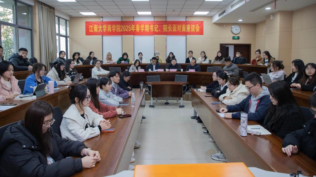2月28日下午,性爱网站 2025年春学期“与书记、院长面对面”师生座谈会在MBA118会议室举行。院党委书记刘长青,院长浦徐进,党委副书记兼副院长孙小芳,副院长刘勇,分团委书记王璁以及各年级学生代表参加了本次座谈交流。座谈会由院学生会主席卞宇轩主持。