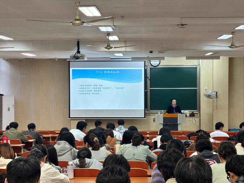 讲座中,肖凌燕老师从积极心理学视角出发,结合《次第花开》中“接纳变化、修心前行”的理念,引导新生认识到心态在研究生阶段的关键作用,鼓励大家以开放、感恩的态度迎接新挑战,构建积极的认知框架。同时她聚焦“如何构建阳光心态”,系统讲解了认知、时间、情绪和人际四大管理策略,并强调关爱自己是心态建设的基础,要从规律作息、适度运动、主动求助等多方面做好自我照顾。